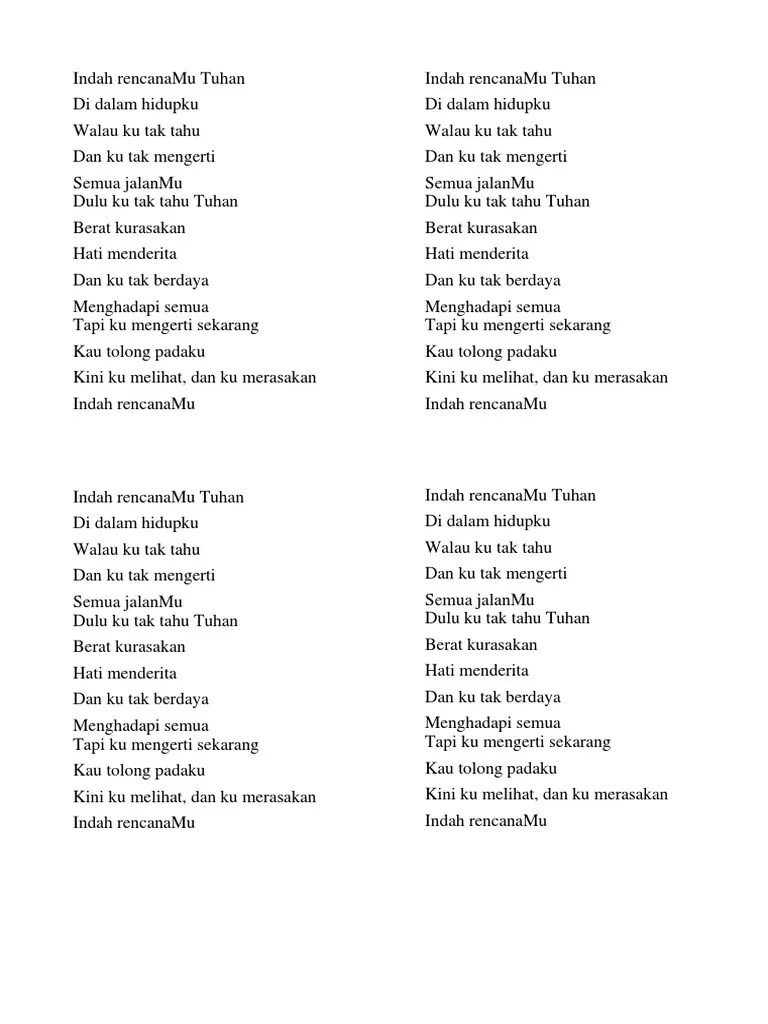 Indah rencanamu tuhan adalah lagu populer dari priskila | buat video tiktok anda sendiri dengan lagu indah rencanamu tuhan dan jelajahi video 6.4k yang . Entra e non perderti neanche una parola! Salah satu kidung rohani, indah rencanamu tuhan, dilantunkan kembali oleh priskila dan versinya ini menjadi salah satu yang paling populer. Rencana tuhan lebih indah dari rencana manusia. Lagu ini dinyanyikan dengan berbagai versi, salah satunya .