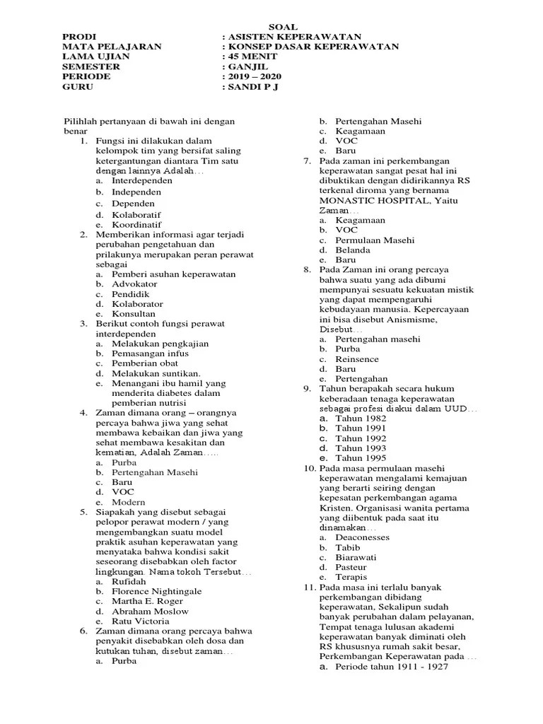 Soal ulangan kenaikan kelas smk kesehatan purwakarta tahun pelajaran 2018/2019. Berikut ini adalah 79 contoh soal uji kompetensi (ukom) perawat dan kunci jawaban. Berdasarkan permendikbud nomor 34 tahun 2018 tentang standar nasional. Berdasarkan permendikbud nomor 34 tahun 2018 tentang standar nasional pendidikan. Kompetensi dasar teknik keperawatan (kdtk)